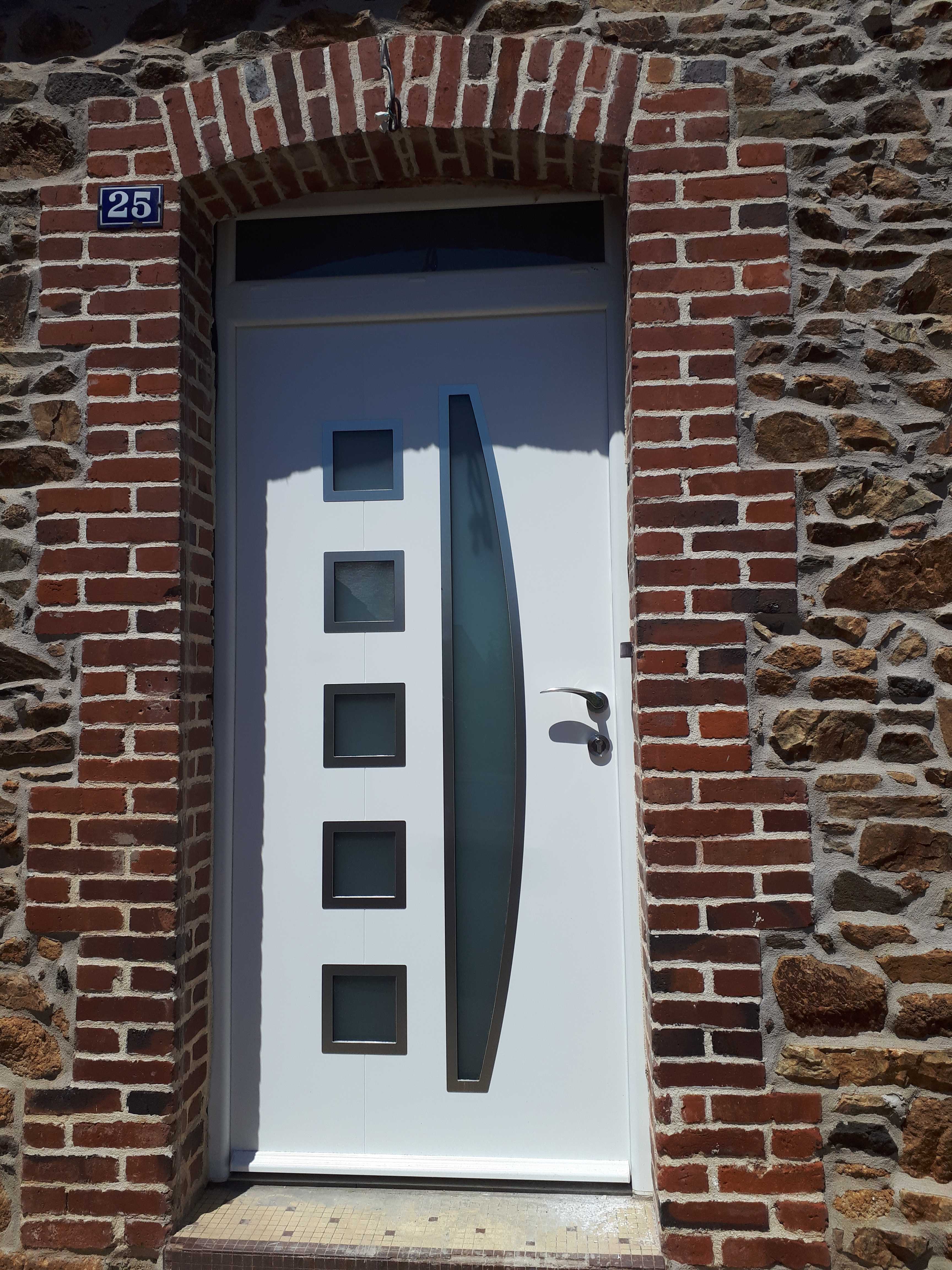 Porte d'entrée alu blanc avec imposte vitré