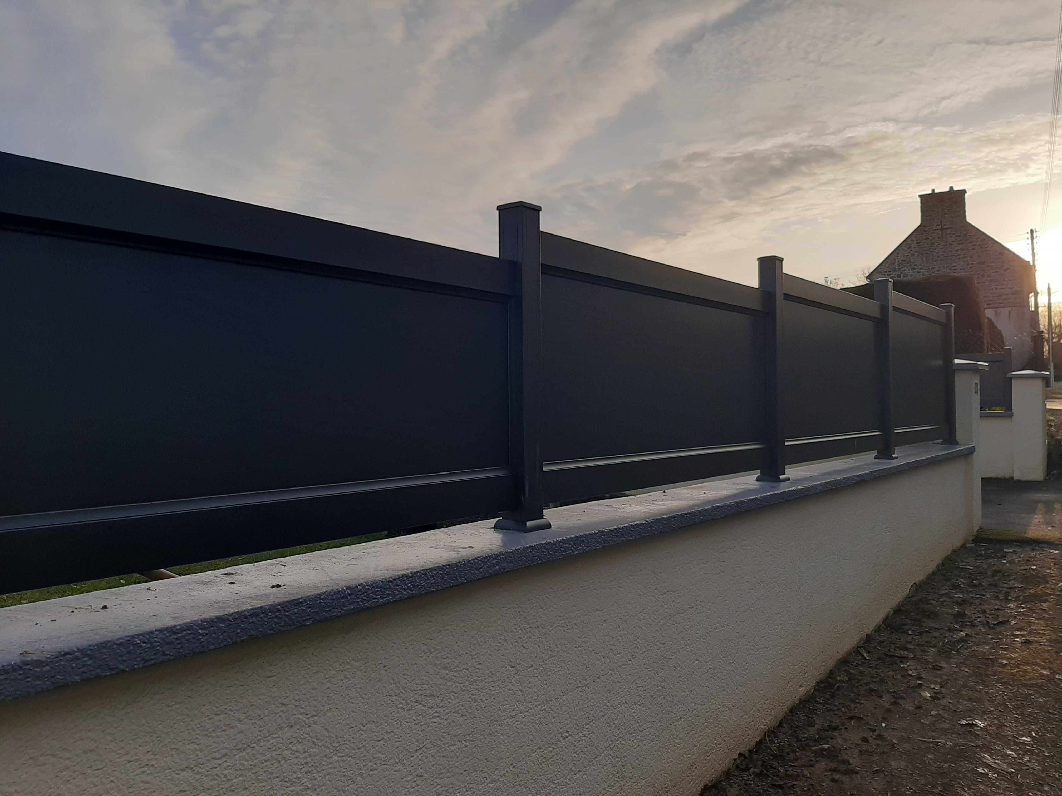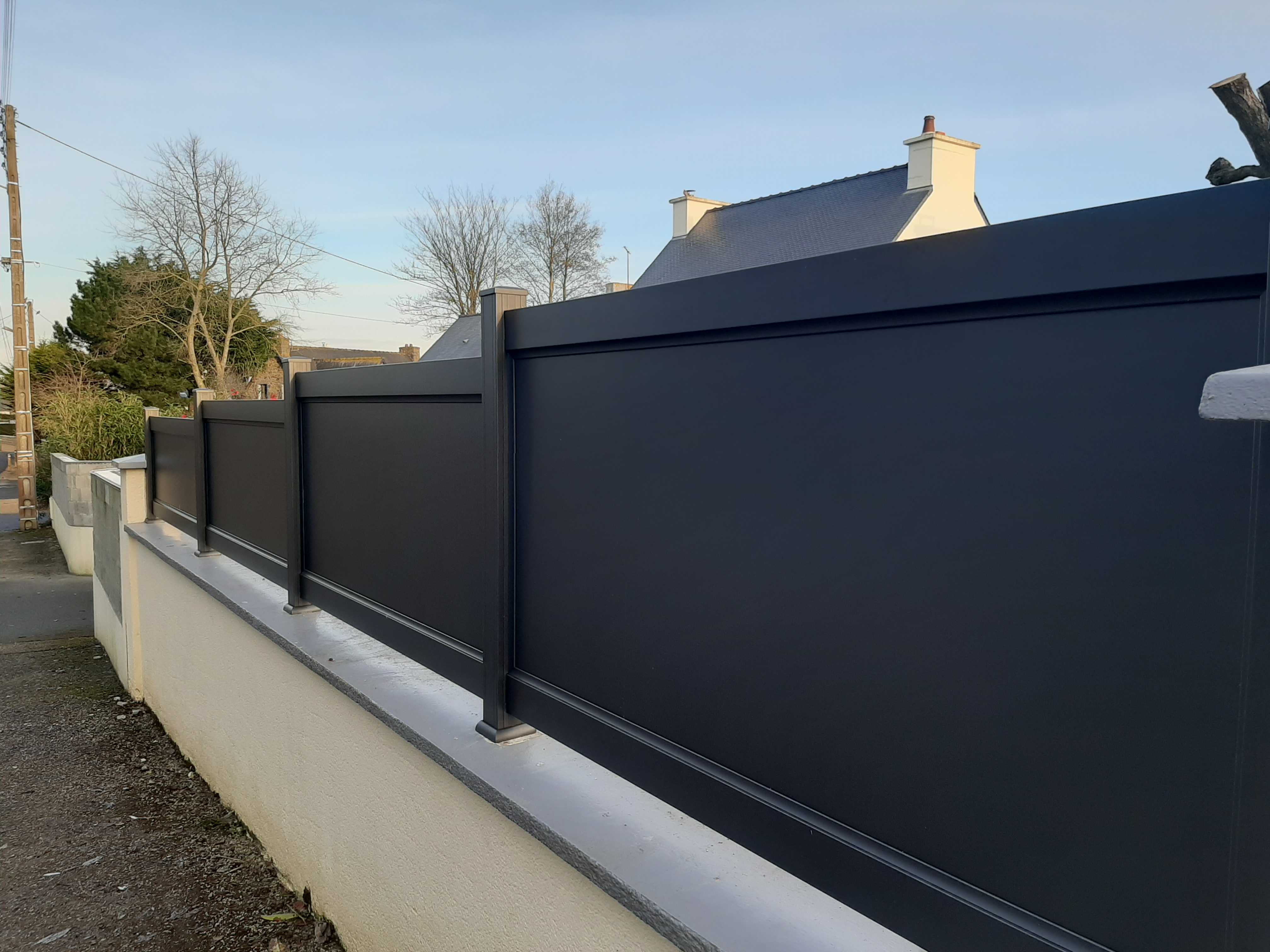 - Clôture Vista C avec poteau de section 80 mm x 80 mm, posées sur platine.